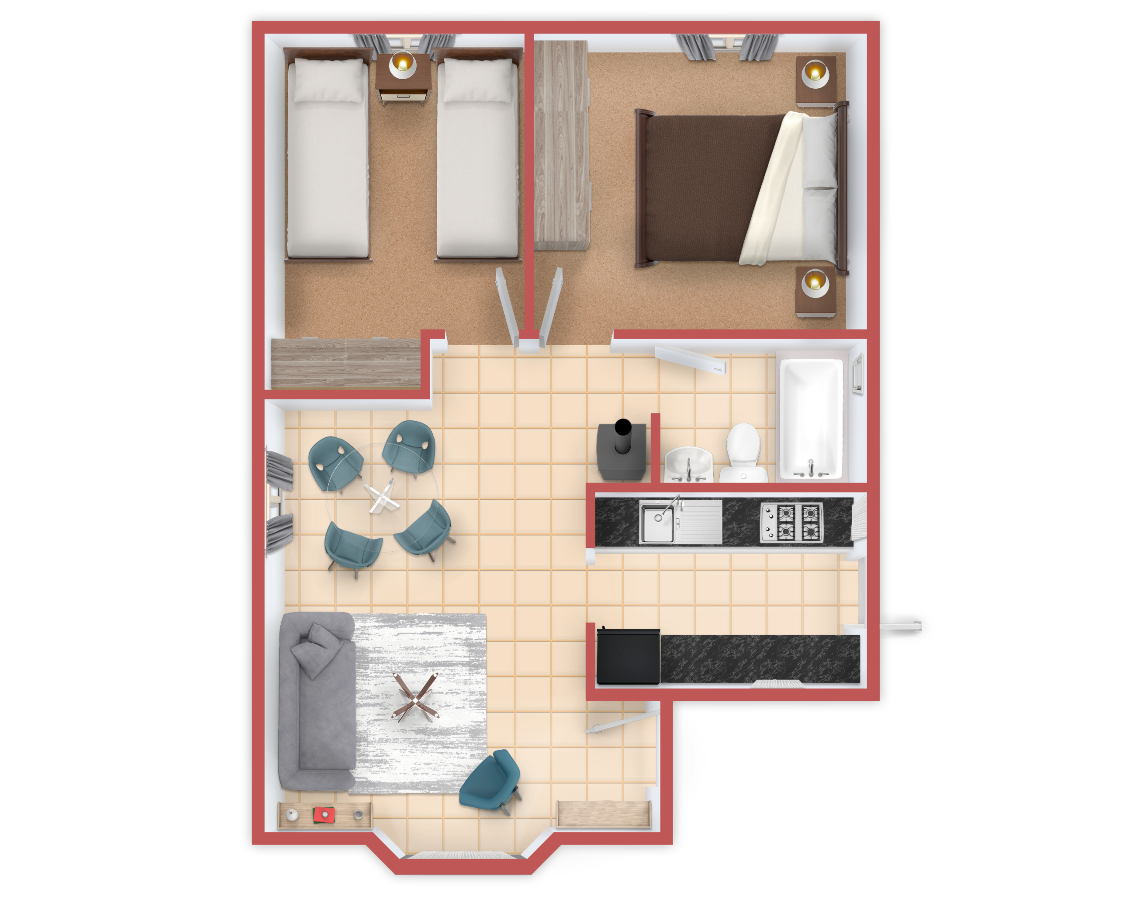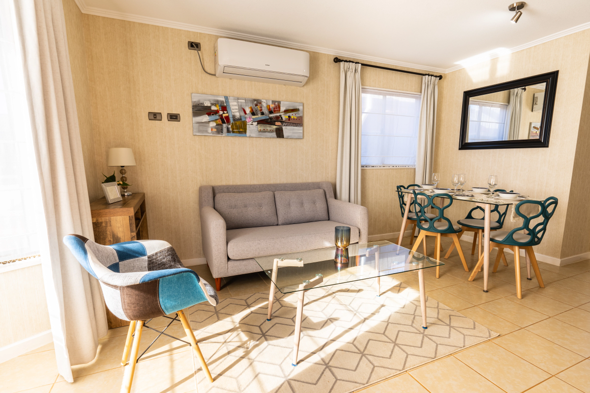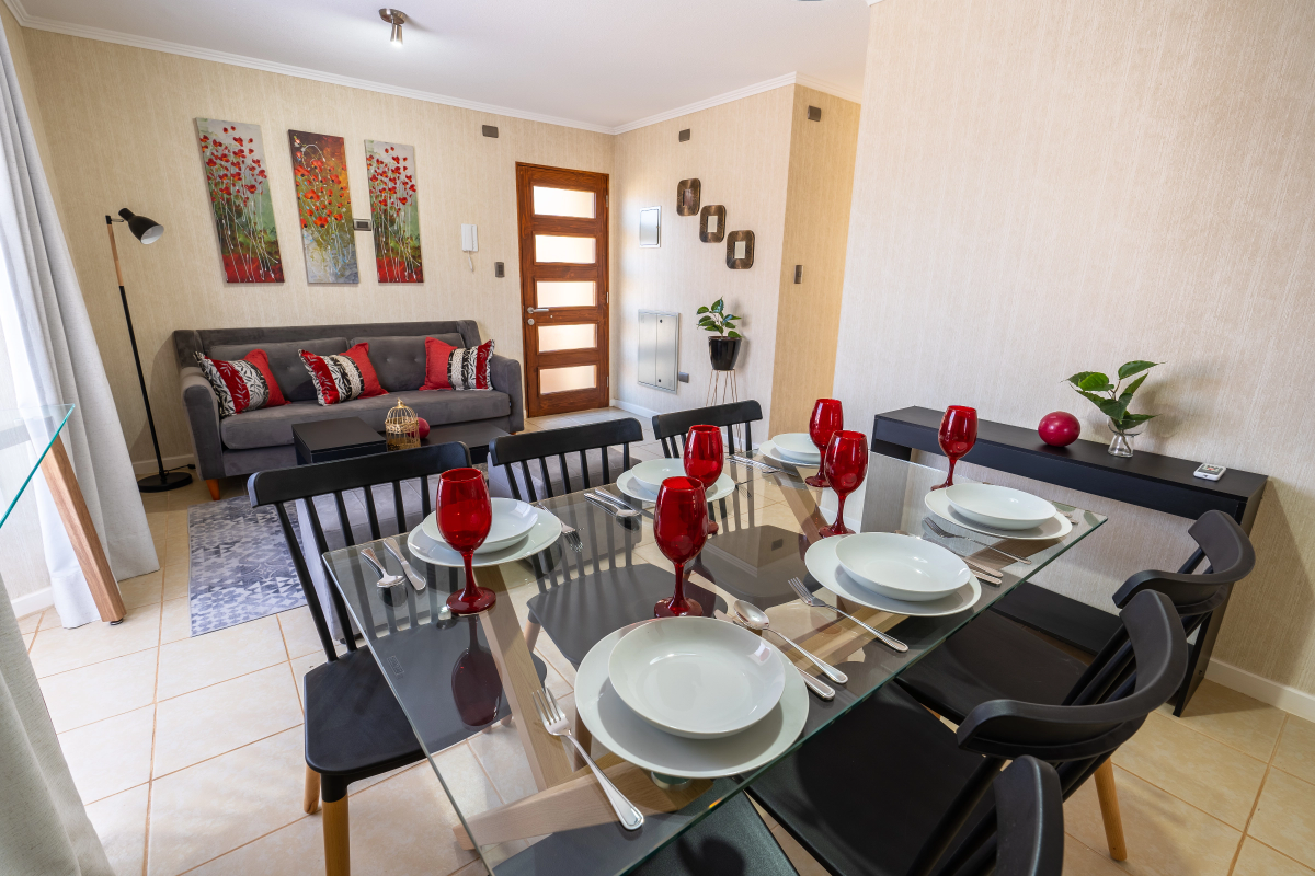 Cocina, living comedor, muros de albañería reforzada, alfombra tipo bouclé en dormitorios, citofonía.