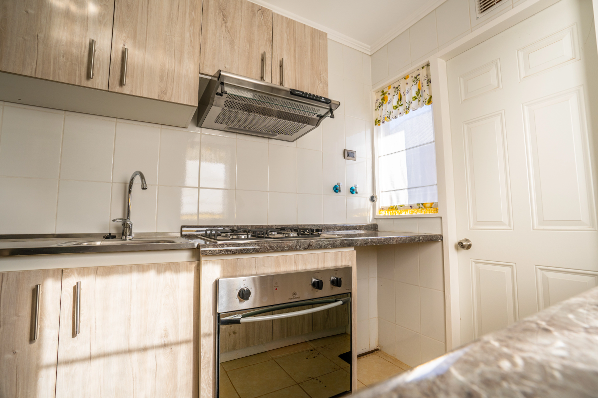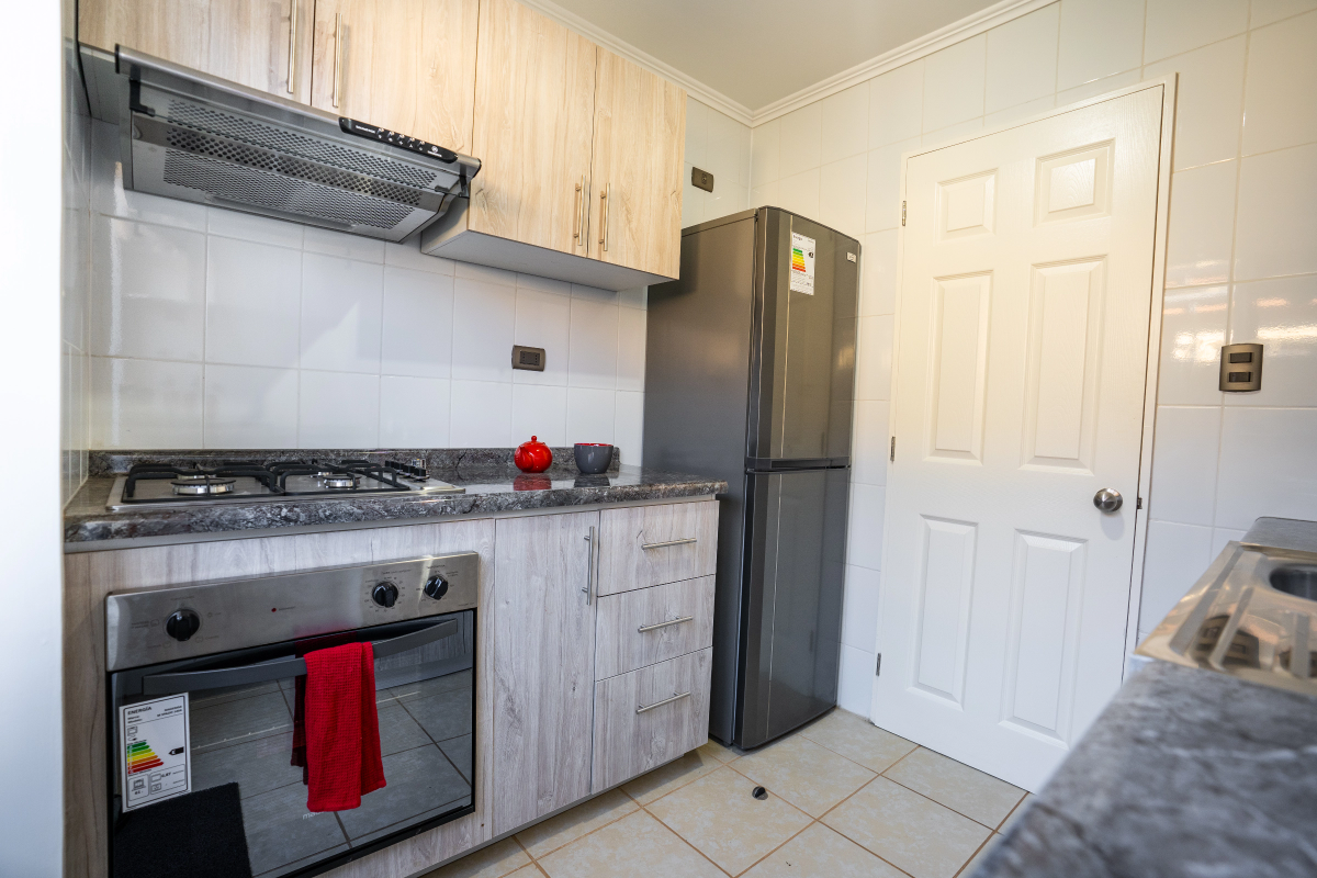Cocina, living comedor, muros de albañería reforzada, alfombra tipo bouclé en dormitorios, citofonía.